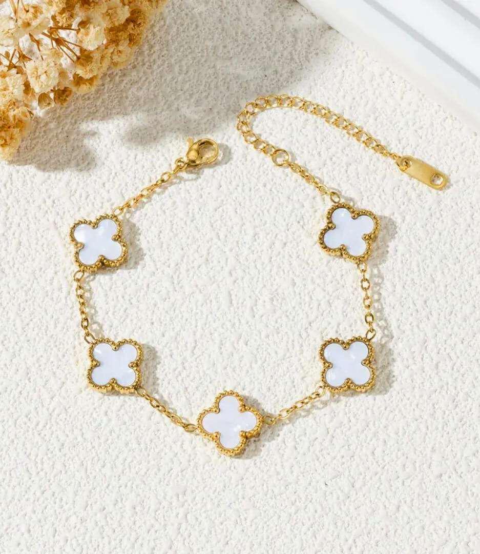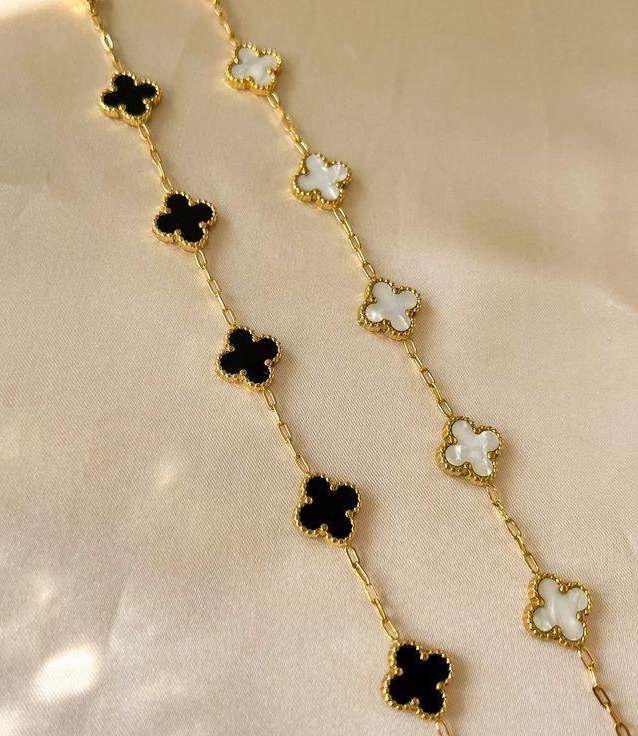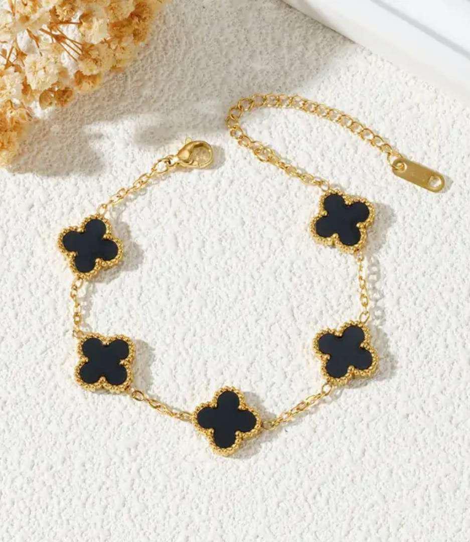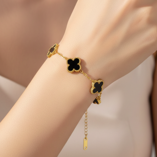 Black & White Clover Charm Bracelet in gold finish by Bougee JewelsClover Charm Bracelet – Black & White