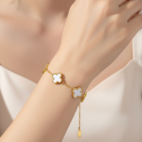 This beautiful charm bracelet is available in two classic colours – Black and White, allowing you to choose the style that best matches your look. The black clover option adds a bold and sophisticated touch, while the white clover option offers a soft, graceful, and timeless appeal.
