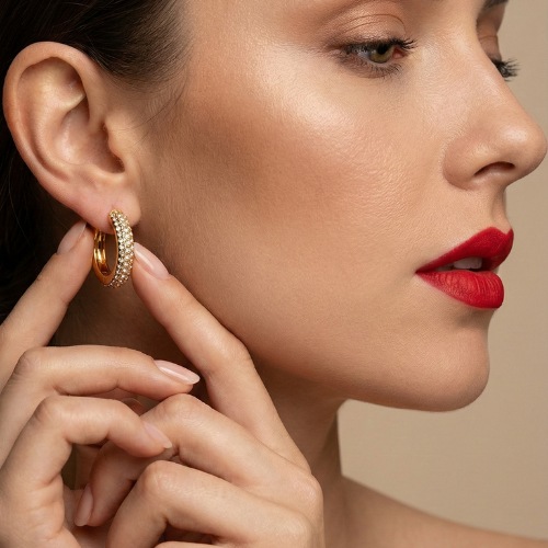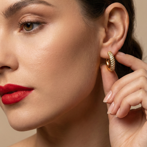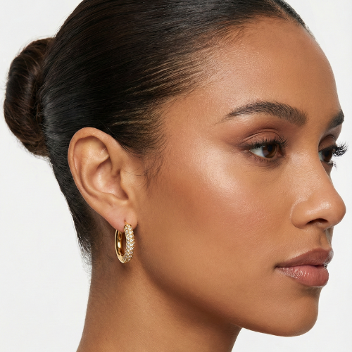 The smooth round hoop silhouette combined with crystal detailing makes these earrings a versatile choice for both casual and dressy looks. Whether you’re heading to work, a brunch date, or an evening event, these earrings elevate your style instantly.