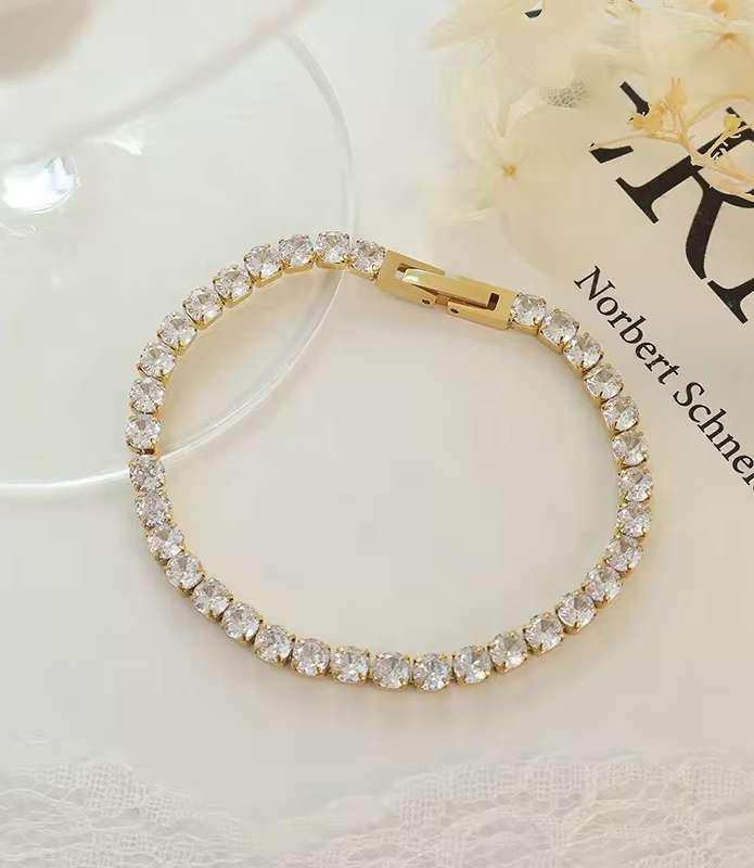 Crystal tennis bracelet with full stone setting by Bougee JewelsCrystal Tennis Bracelet