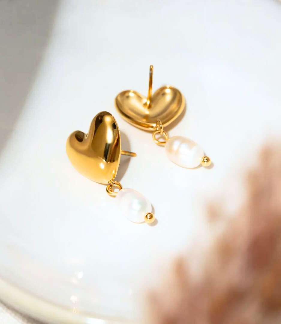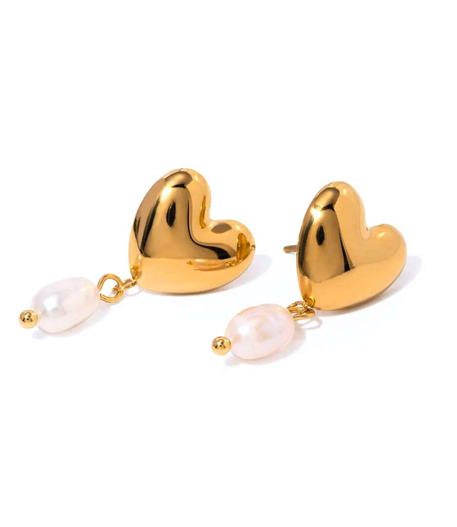 The Heart Pearl Drop Earrings from Bougee Jewels are a perfect blend of romance and elegance. Featuring a polished gold heart-shaped stud paired with a soft pearl drop, these earrings add a graceful charm to your jewellery collection.