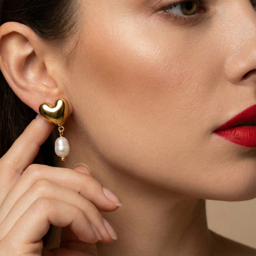 Designed for women who love delicate yet expressive jewellery, the heart motif symbolises love while the pearl drop adds a timeless, classy finish. The smooth gold shine beautifully complements the natural pearl, creating a balanced and elegant look.