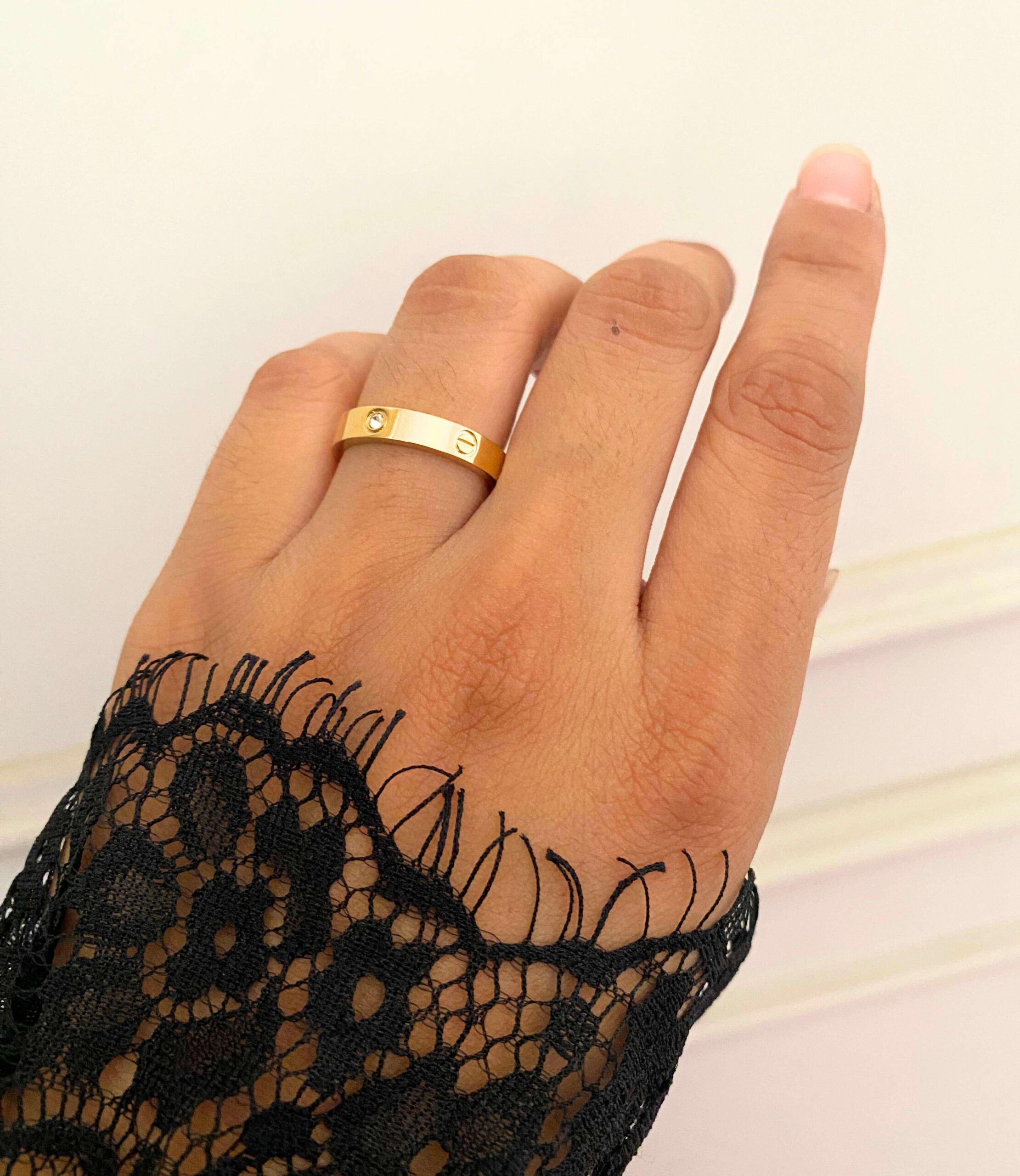 A minimal plain crystal band ring designed for elegant everyday office wear and professional styling.