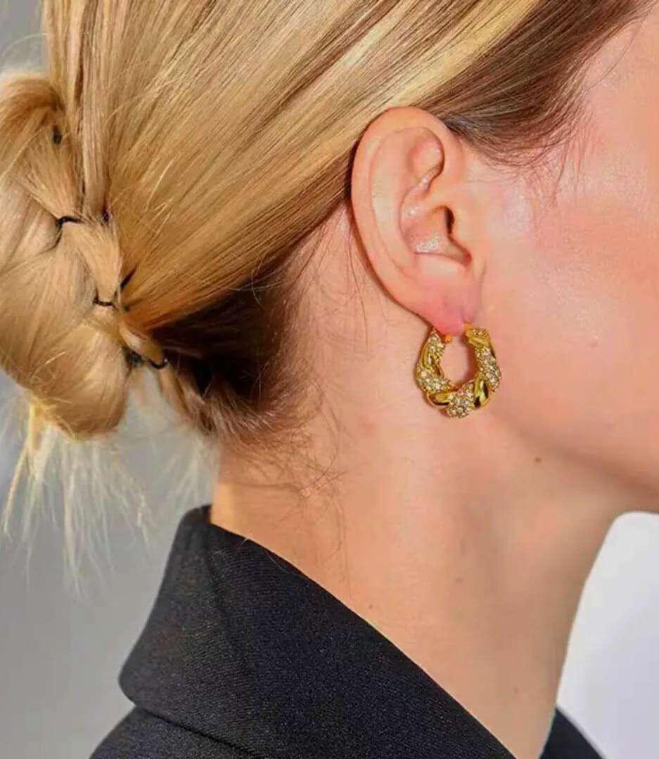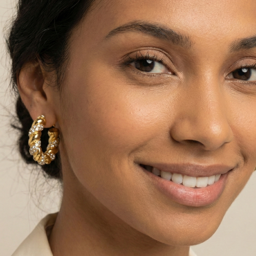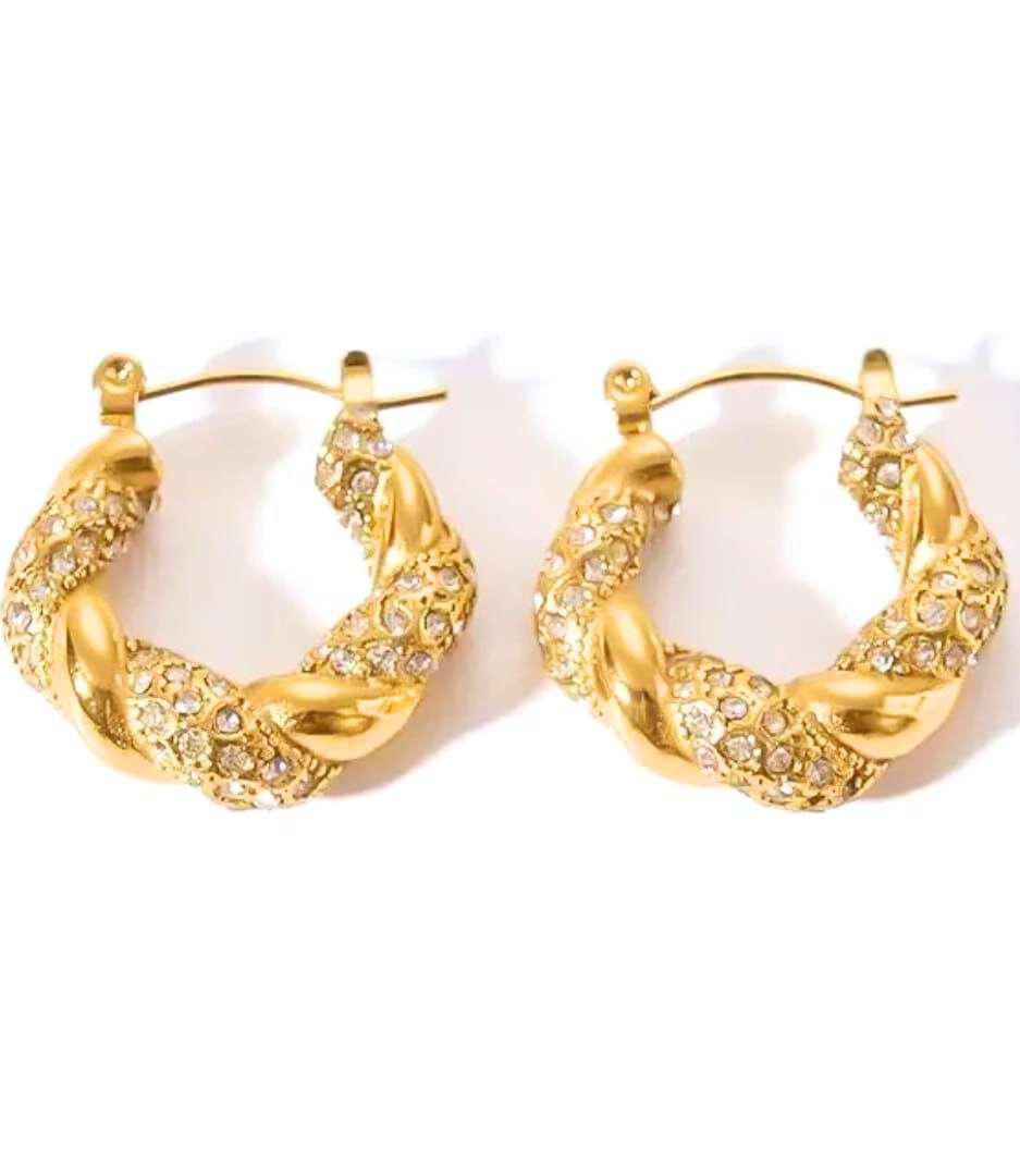 Finished in a rich gold tone, the braided twist detail adds depth and texture, while the crystal embellishments reflect light beautifully. These hoops are perfect for women who love statement jewellery with a luxurious feel.